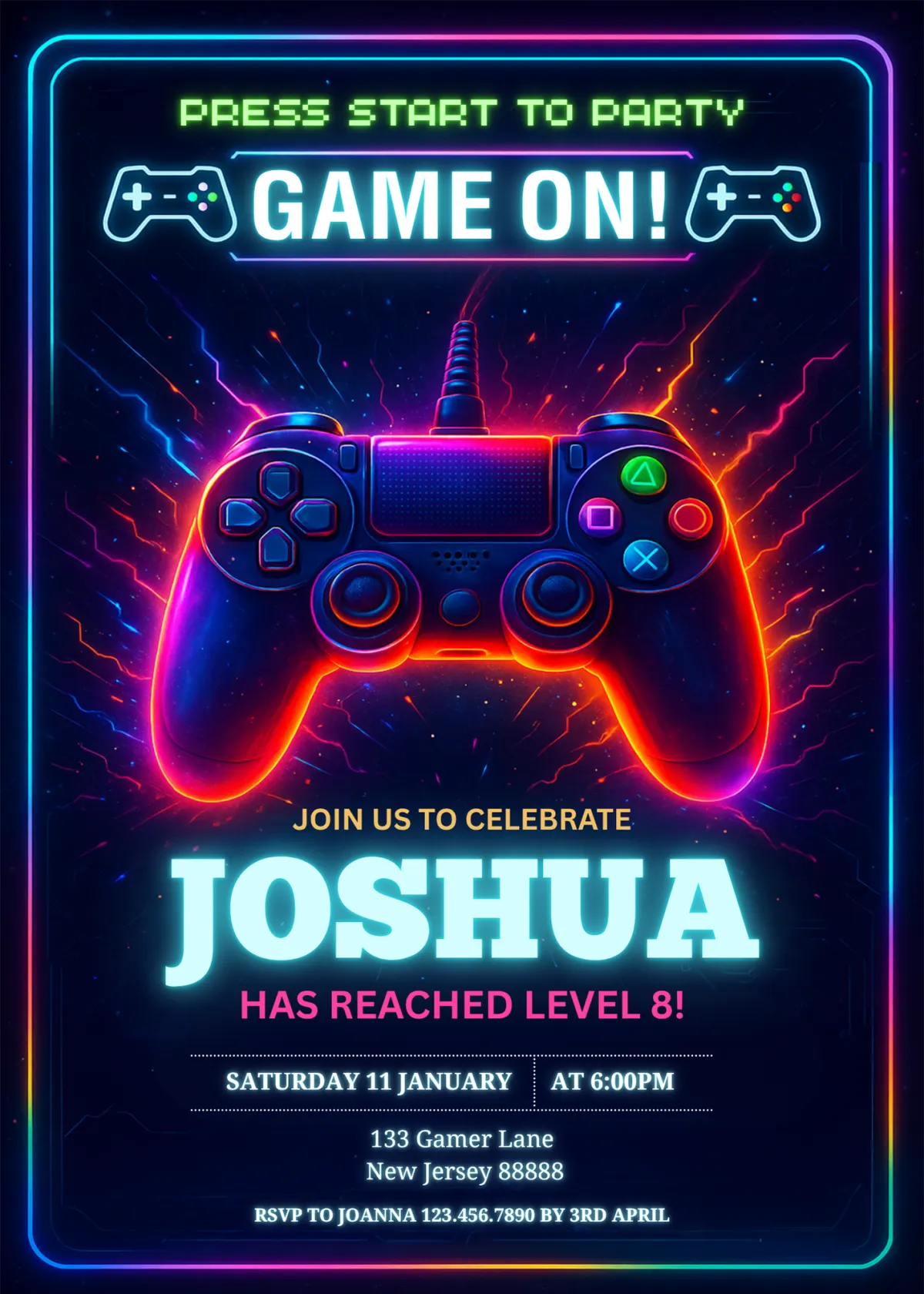 Provide us with your guest of honor's name, age, event day and time. As well as your event address and RSVP info and a member of the M2Y team will have these over to you shortly.